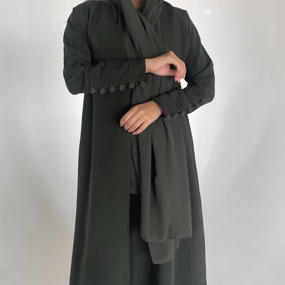 وصف العباية : عباية نص كلوش مع كسرات في الاكمام