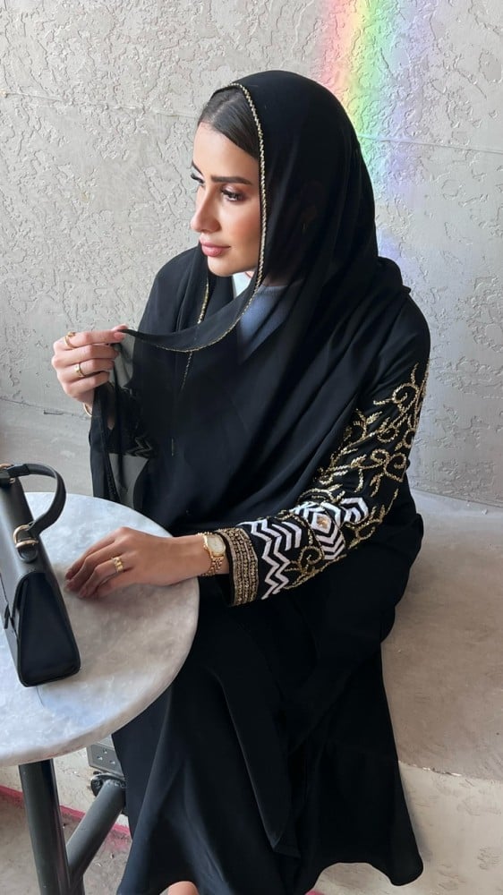 ملحقات العباية : طرحة بتطريز يدوي في الاطراف