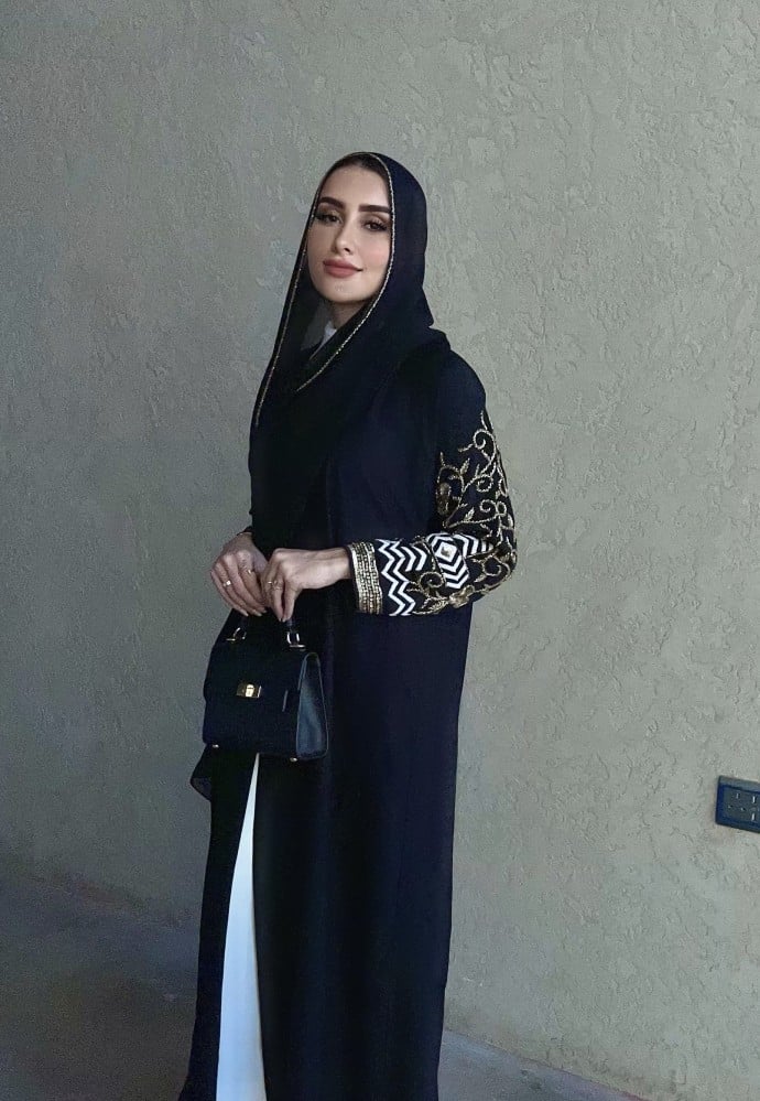 تطريز يدوي في الاكمام مبطن و تطريز في الطرحة